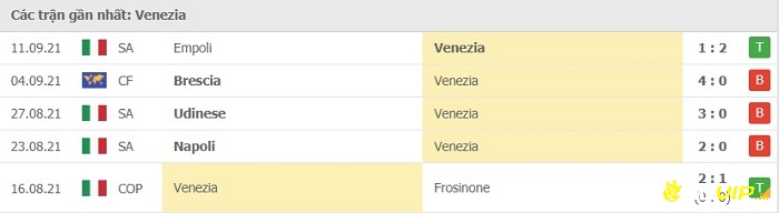 – Venezia đã thất bại ⅚ trận gần nhất tính theo kèo Châu Á.